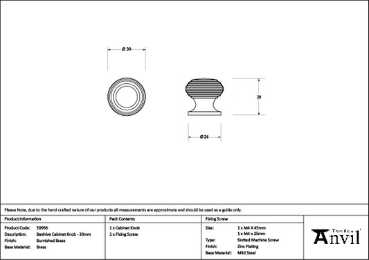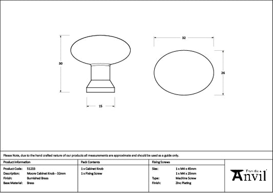 Burnished Brass Mushroom Cabinet Knob 32mm