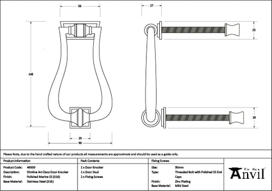 Polished Marine SS (316) Slimline Art Deco Door Knocker