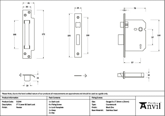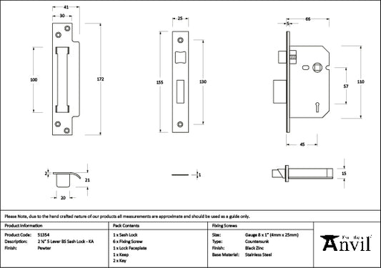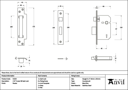 Pewter 2½" 5 Lever BS Sash Lock KA