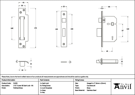 Polished Brass 2½" 5 Lever BS Sash Lock KA