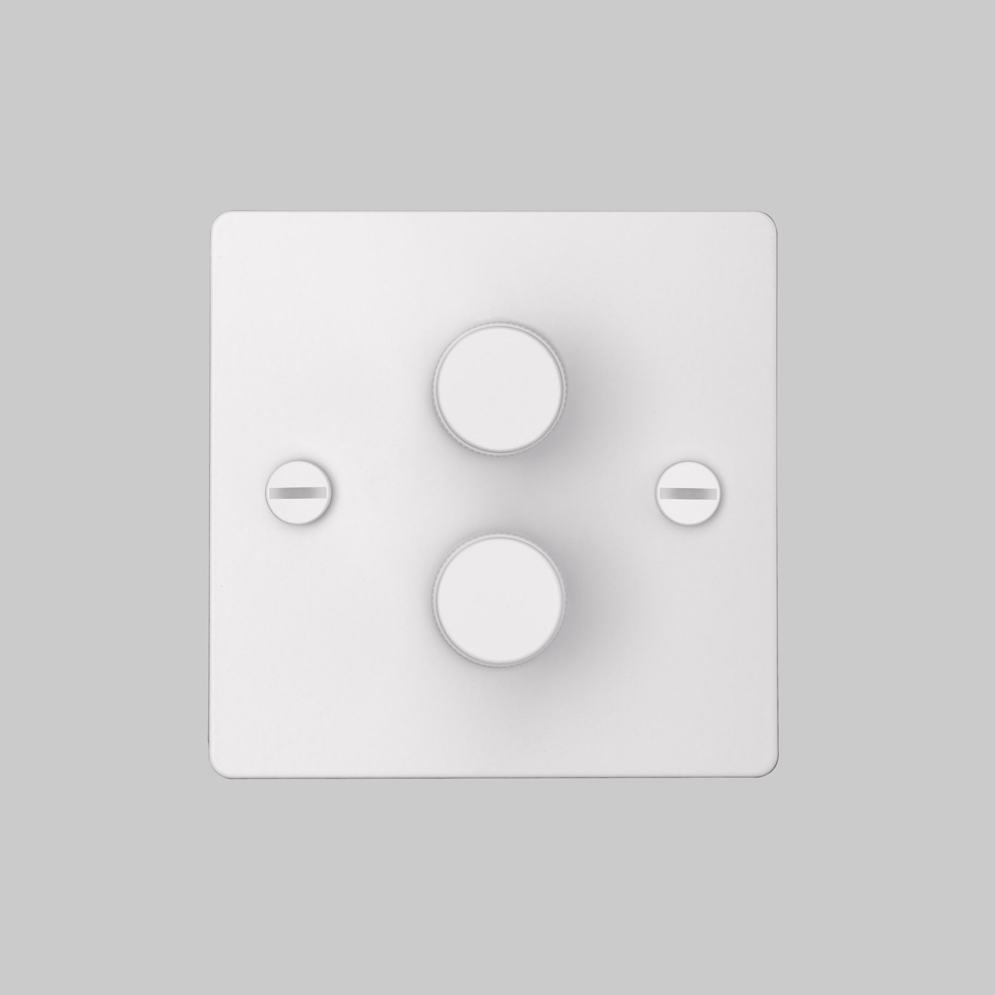 A 2G dimmer switch in solid metal finished in durable, UV stabilised, PU paint. It comes with a choice of solid metal detail kits including a dimmer knob and coin screws, available in steel, brass or white.