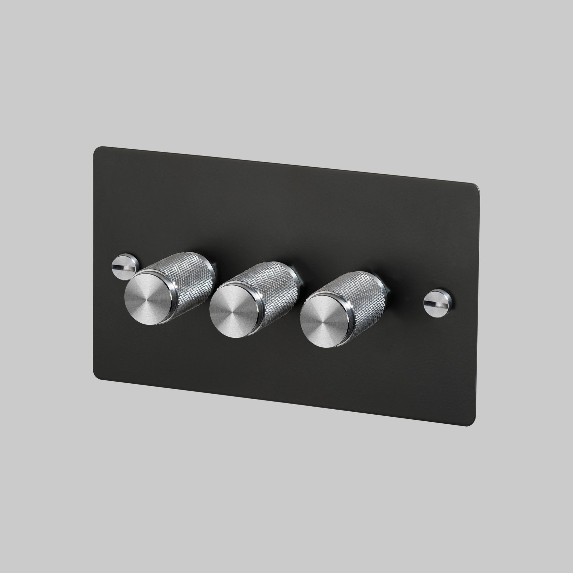 A 3G dimmer switch in solid metal finished in durable, UV stabilised, PU paint. It comes with a choice of solid metal detail kits including a dimmer knob and coin screws, available in steel, brass or black.