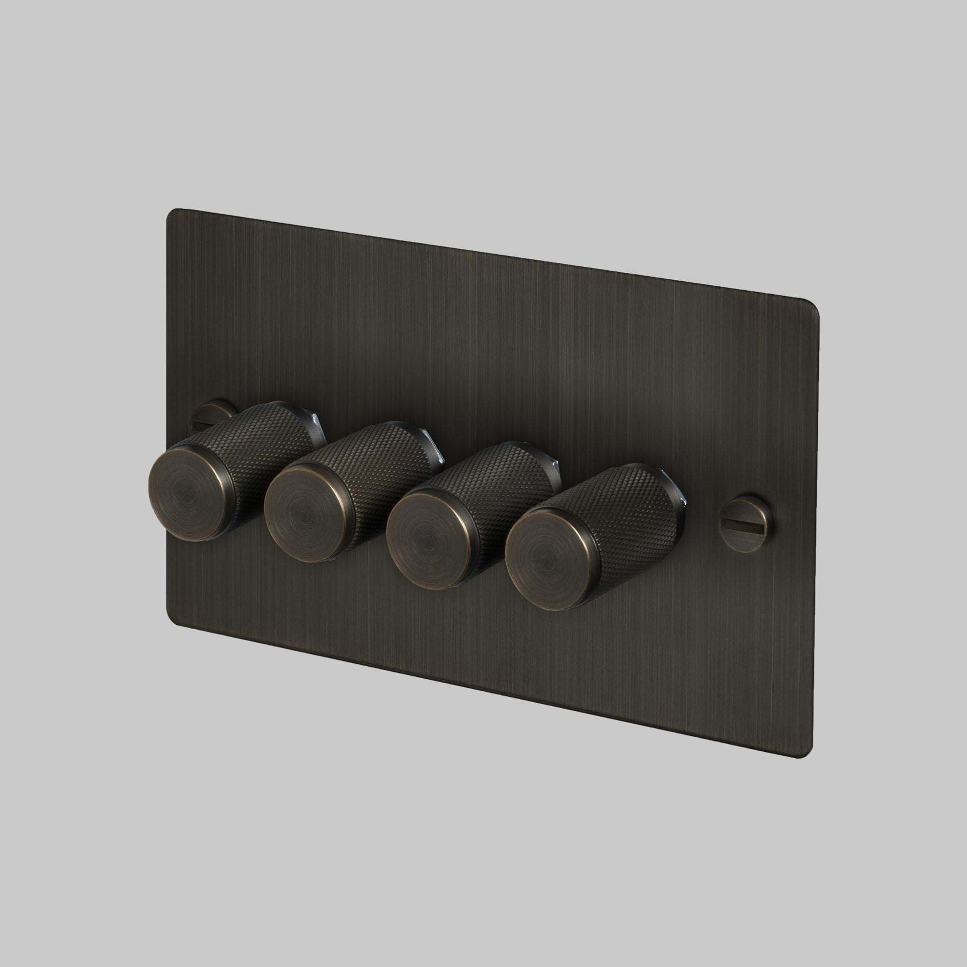 A 4G dimmer switch finished in smoked bronze and comes with a choice of solid metal detail kits. The detail kit includes a dimmer knob and coin screws, available in smoked bronze or brass.