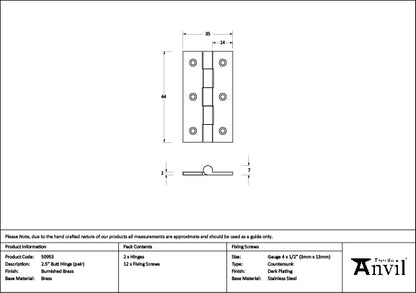A simple butt hinge manufactured from solid brass, perfect for hanging a variety of cupboard and cabinet doors.