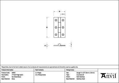 Overall Size: 50mm x 28mm Leaf: 11mm Thickness: 2mm