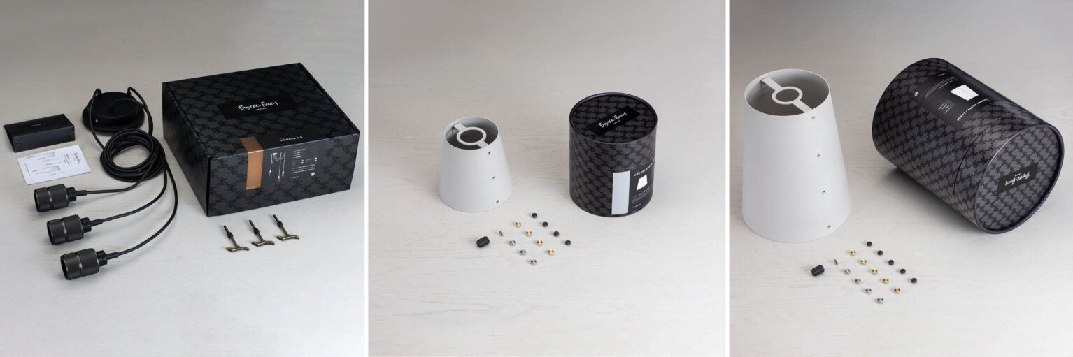 A chandelier made up of three light pendants, each with their own customising hook, and matte rubber detailing. This light is available with STEEL, BRASS or SMOKED BRONZE pendants.