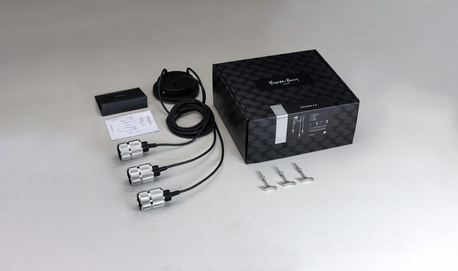 A chandelier made up of three light pendants, each with their own customizing hook, and matte rubber detailing. This light is available with STEEL, BRASS or SMOKED BRONZE pendants.